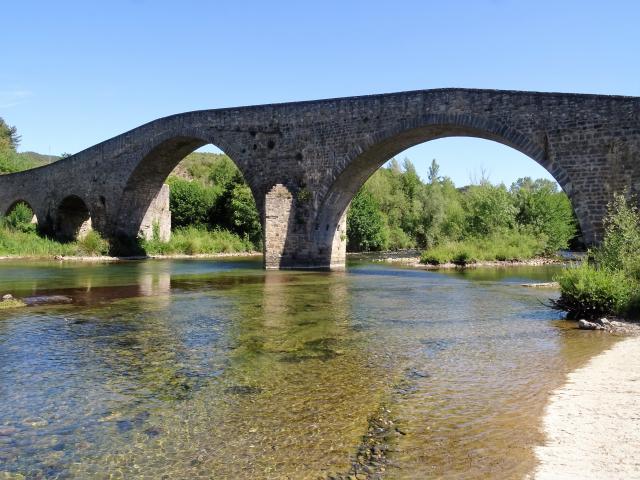 Inicia el regreso siguiendo el camino hacia el sur-suroeste, que te llevará a la pista que sube desde el Puente Romano de Aoiz. Encontrarás varios alcorces para evitar la pista balizada y bien definida hasta llegar al puente. Ten cuidado en los tramos con pendiente pronunciada.